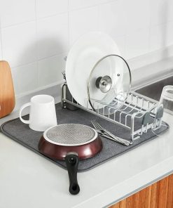 Paño de microfibra super absorbente para usar en mesada, platos, vasos… se pliega para guardarlo fácilmente. Puede ser lavado a maquina, de secado rápido.