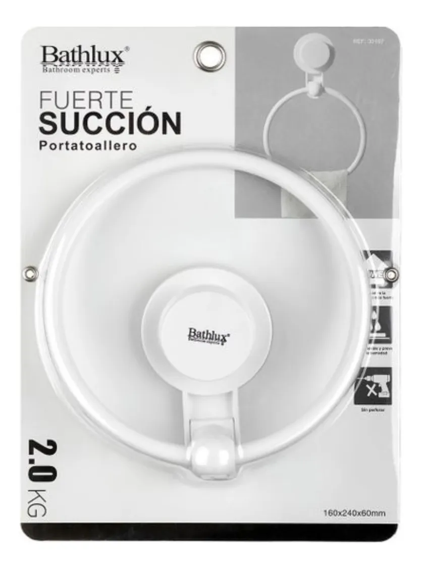 Porta Toallero Circular Con Soporte Ventosa De Pared Bathlux