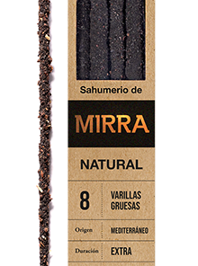 La Mirra es una resina que se extrae de distintos árboles cultivados principalmente en Arabia y Etiopía, tiene un aroma intenso, amaderado y rústico. El propósito de la mirra es para ocasiones de purificación, sanación y limpieza energética de ambientes y personas. El humo de la mirra ofrece claridad cuando hay confusión y fortalece el espíritu cuando hay sentimientos negativos.
